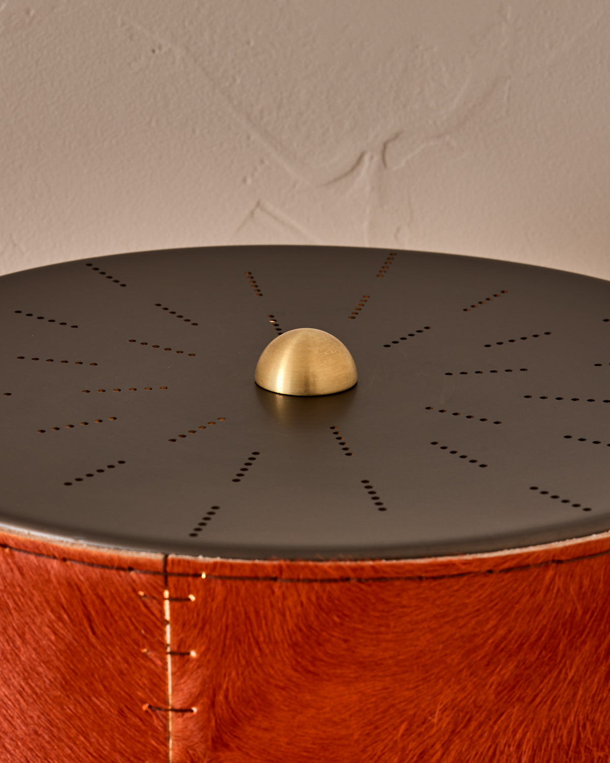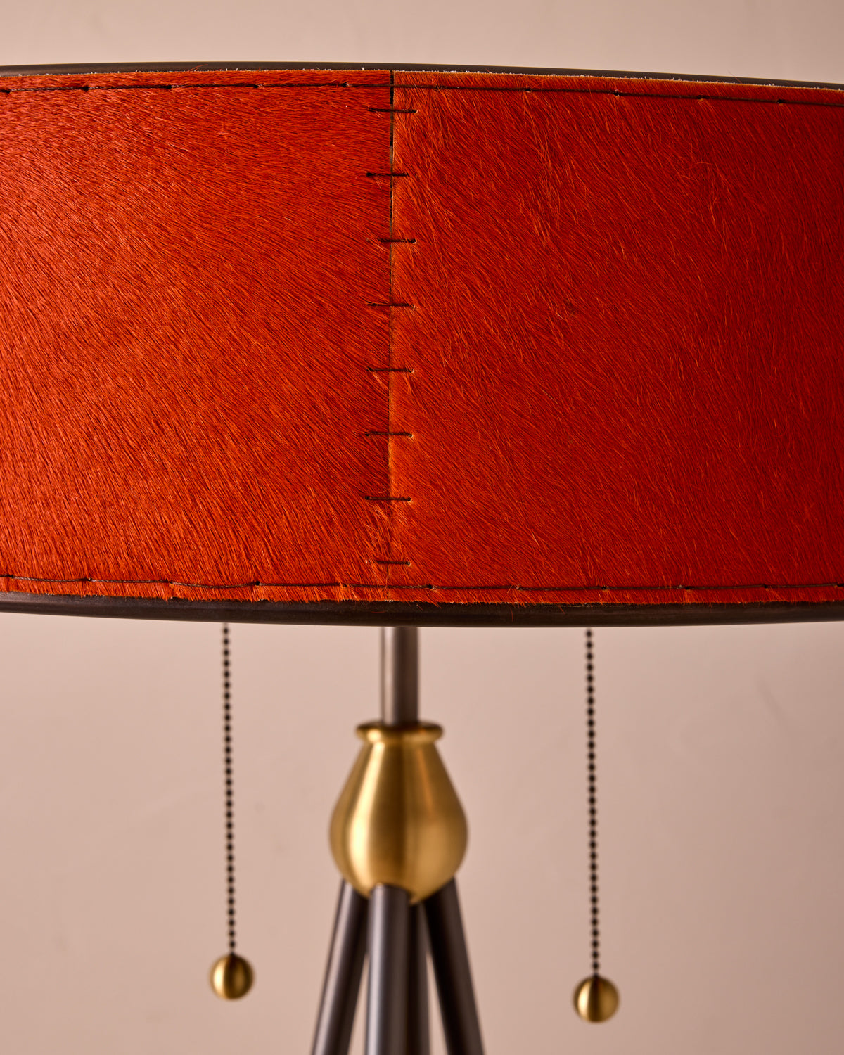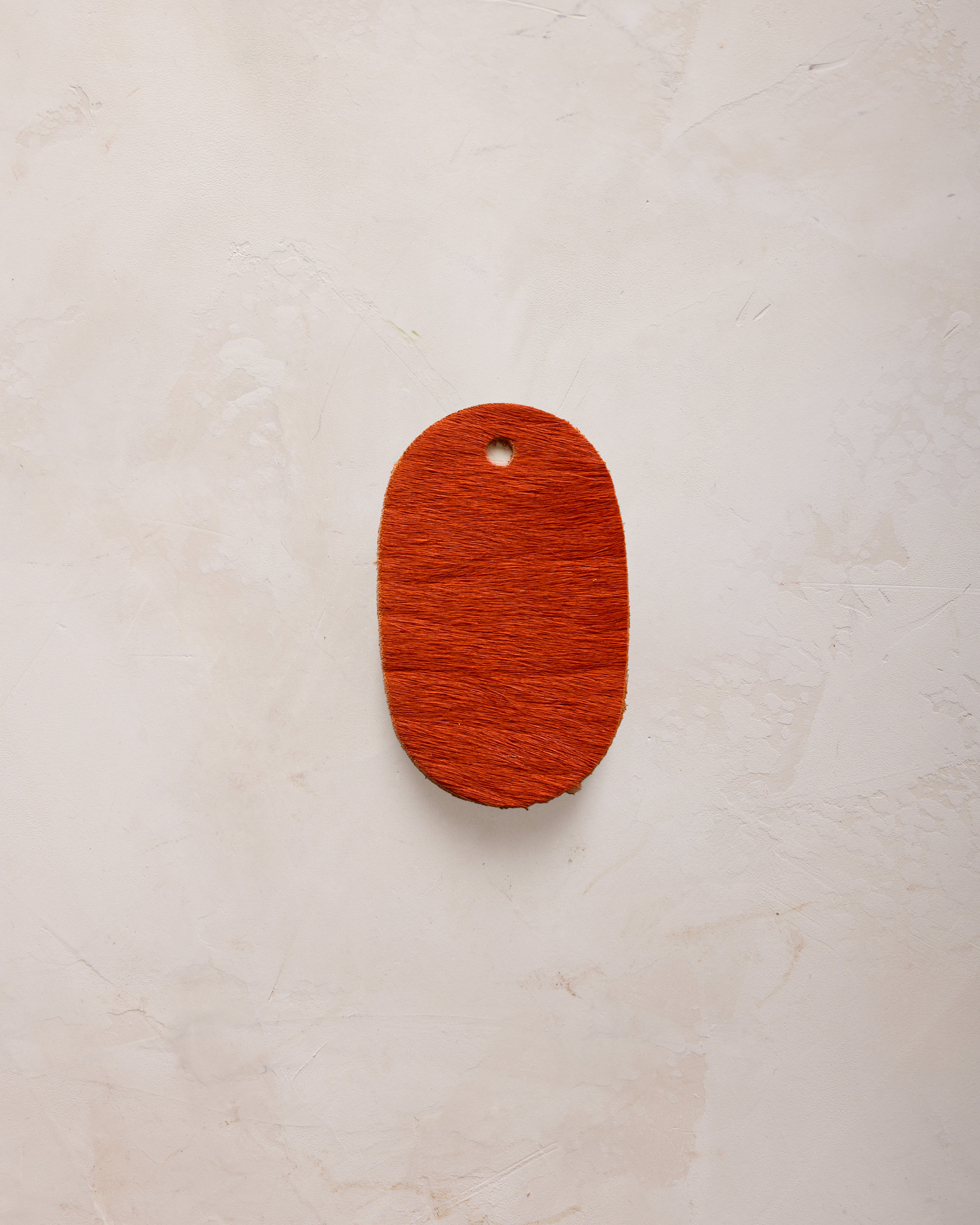 American natural haired hide leather. Designed to age and patina with use and time, wearing in beautifully. This material exhibits natural markings and inherent color and textural variations.
